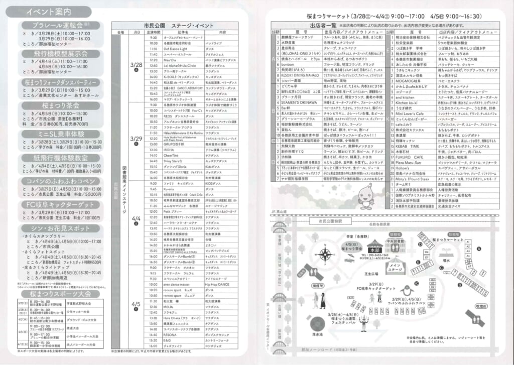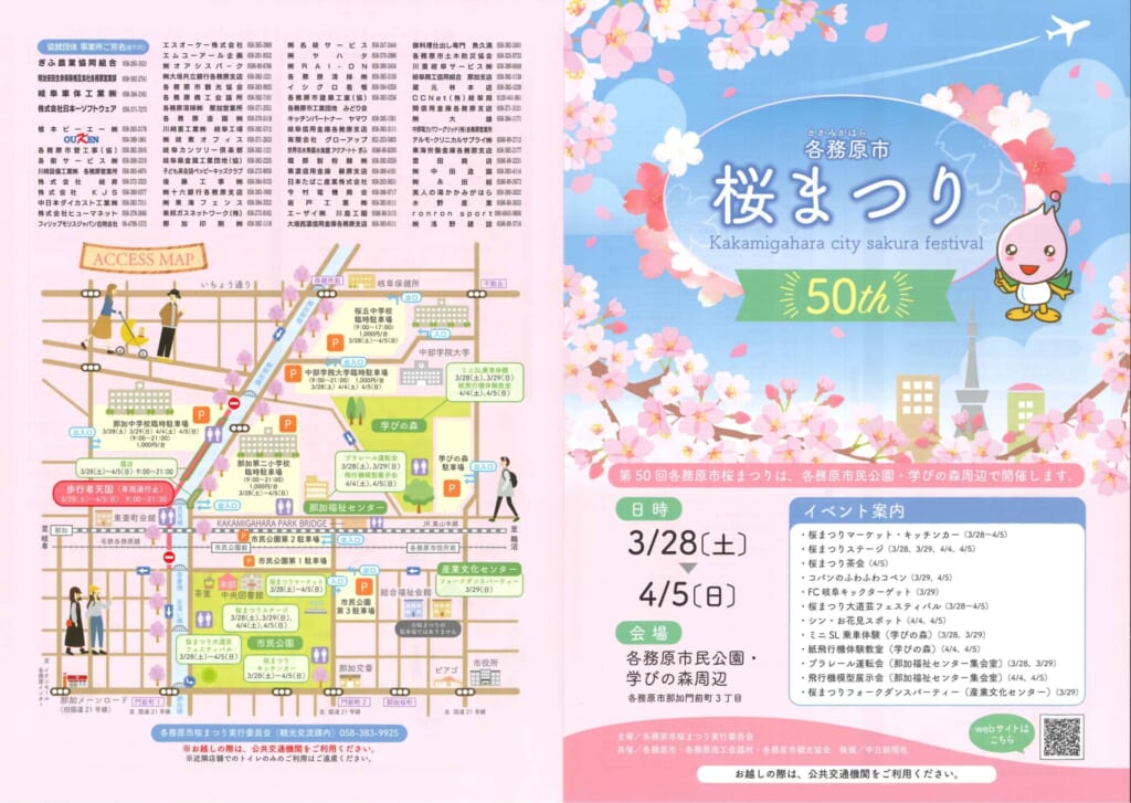 BLOG BLOG TOP BLOG 2026/03/28 各務原市 桜まつりが開催されます。 2026/03/25 2026/03/28 各務原市 桜まつりが開催されます。 2026年03月28日(土) 、29日(日) 、4月4日(土) 、5日(日) 4日間開催されます。 催しの開催時間は、チラシをご確認ください。 たくさんの催しや、キッチンカーや屋台も多数出展します。 back to allnext RELATED ARTICLES 2026/03/25 2026/03/28 各務原市 桜まつりが開催されます。 2025/10/24 各務野高校にて AI研修授業をさせていただきました。 2025/10/23 自衛隊ヘリコプター体験ツアーに参加致しました。 2025/09/22 社長が新聞に載りました 2025/04/18 第一回 従業員 AI研修会を行いました。 2025/03/13 広瀬県議会議員にお越しいただきました。