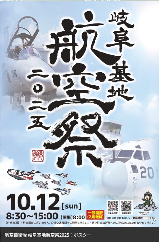 詳しくは、航空自衛隊 岐阜基地航空祭2025|2025年10月12日(日)|陸自調査団 ホームページをごらんください。